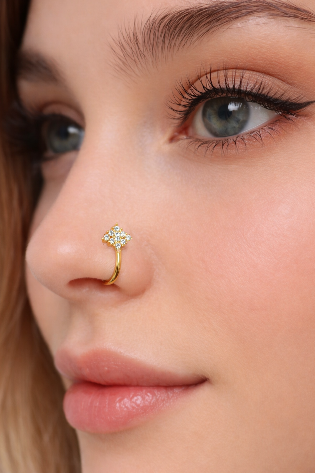 Sıkıştırmalı burun hızması olarak tasarlandı ancak kıkırdağın üst kısmında sıkıştırmalı küpe olarak da kullanılabilir.