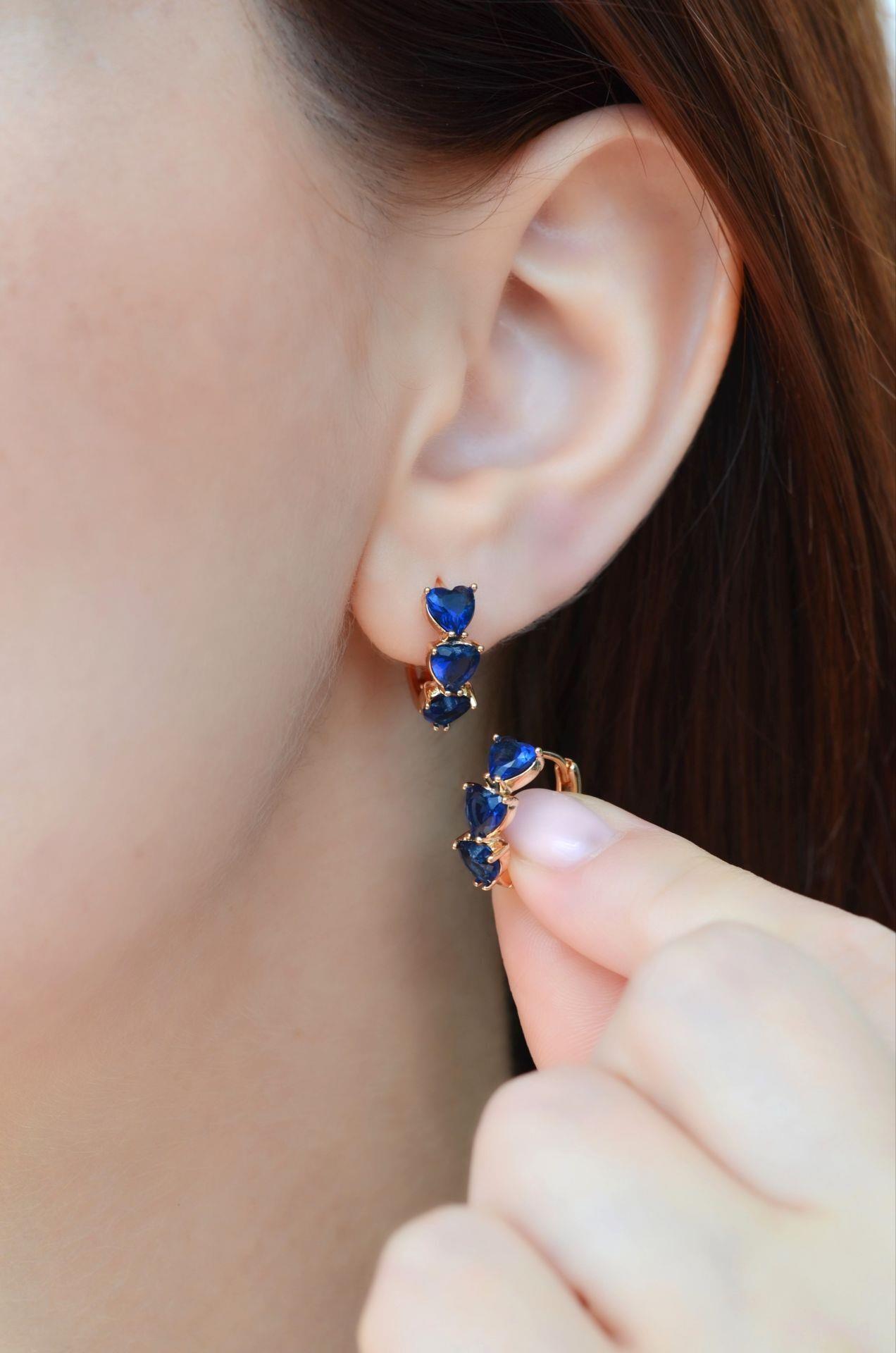 Zirkon Taşlı Lacivert Kalpli Küpe Lacivert Taşlı Halka